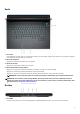 Table des matières Chapitre 1: Configuration de votre Alienware m15 R3..........................................................................4 Chapitre 2: Vues de l’ordinateur Alienware m15 R3..............................................................................5 Affichage.............................................................................................................................................................................. 5 Gauche.............................................