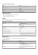 Tabuľka5. Externé porty (pokračovanie) Popis Hodnoty Videoport • • • Čítačka pamäťových kariet Jeden slot na kartu microSD Port na pripojenie dokovacej stanice Jeden port DisplayPort na pripojenie externej grafickej karty POZNÁMKA: Tento port je kompatibilný s grafickým zosilňovačom Alienware. Port napájacieho adaptéra 1 port na pripojenie napájacieho adaptéra E4 s rozmermi 7,4 mm x 5,1 mm Security Jeden slot na bezpečnostný kábel (s klinovým zámkom) Jeden port HDMI 2.