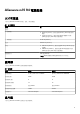 表 5. 外接式連接埠 說明 值 音訊連接埠 一個耳麥 (頭戴式耳機和麥克風組合) 連接埠 視訊連接埠 ● 一個 HDMI 2.1 連接埠 ● 一個 Mini DisplayPort 1.4 ● 一個 Thunderbolt 3 (USB Type-C) 連接埠 (具備 Power Delivery 功能) 媒體讀卡機 一個 microSD 卡插槽 電源變壓器連接埠 一個 7.4 mm x 5.1 mm E4 DC-in 安全纜線孔 一個楔形鎖孔 內部插槽 下表列出 Alienware m15 R4 的內部插槽。 表 6. 內部插槽 說明 值 M.2 ● 兩個固態硬碟專用 M.2 2230/2280 插槽 ● 一個固態硬碟專用 M.2 2230 插槽 註: 如需深入瞭解不同類型 M.2 卡的功能,請參閱知識庫文 章 000144170,網址為 www.dell.com/support。 乙太網路 下表列出 Alienware m15 R4 的有線乙太網路區域網路 (LAN) 規格。 表 7.
