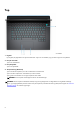 Visninger af Alienware m15 R4 Højre set fra højre 1. microSD-kortslot Læser fra og skriver til microSD-kort Computeren understøtter følgende korttyper: ● Micro Secure Digital (mSD) ● Micro Secure Digital High Capacity (mSDHC) ● Micro Secure Digital Extended Capacity (mSDXC) 2. USB 3.2, 1. gen.-porte (2) Tilslut udstyr som f.eks. ekstern storage og printere. Giver dataoverførselshastigheder op til 5 Gbps. Venstre set fra venstre 1.
