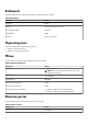 Tabell 8. Spesifikasjoner for trådløsmodul Beskrivelse Verdier Overføringshastighet Opptil 2400 Mbps Frekvensbånd som støttes 2,4 GHz/5 GHz Trådløsstandarder ● ● ● ● Kryptering ● 64-biters/128-biters WEP ● AES-CCMP ● TKIP Bluetooth Bluetooth 5.1 Wi-Fi 802.11a/b/g Wi-Fi 4 (Wi-Fi 802.11n) Wi-Fi 5 (Wi-Fi 802.11ac) Wi-Fi 6 (Wi-Fi 802.11ax) Lyd Følgende tabell inneholder lydspesifikasjoner for Alienware m15 R4. Tabell 9.
