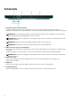 Weergaven van Alienware m15 R6 Links 1. Netwerkpoort Hierop kunt u een Ethernet (RJ45) kabel aansluiten vanaf een router of een breedbandmodem voor netwerk- of internettoegang. 2. Headsetpoort (gecombineerde poort voor hoofdtelefoon en microfoon) Hierop kunt u een hoofdtelefoon of een headset (gecombineerde hoofdtelefoon en microfoon) aansluiten. Rechts 1. USB 3.2 Gen 1-poort Hierop kunnen apparaten zoals externe storage-apparaten en printers worden aangesloten.