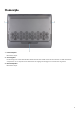 Voorzijde 1. Microfoon links Biedt digitale geluidsuitvoer voor audio-opnamen en spraakoproepen. 2. Infraroodzender (optioneel) Zendt infraroodlicht uit, zodat de infraroodcamera diepte en beweging kan registreren. 3. RGB IR-camera (optioneel) Deze gecombineerde camera ondersteunt infrarood Windows Hello-gezichtsherkenning en standaard RGB-imaging voor foto's en video's. OPMERKING: Het apparaat wordt ook geleverd met een HD RGB-camera waarmee u kunt videochatten, foto's kunt maken en video's kunt opnemen.
