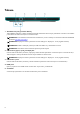 Yläosa 1. Kosketuslevy Voit liikuttaa hiiren osoitinta liikuttamalla sormea kosketuslevyllä. Napautus vastaa vasenta napsautusta ja napautus kahdella sormella oikeaa napsautusta. 2. Vasemman napsautuksen alue Painallus vastaa vasenta napsautusta. 3. Oikean napsautuksen alue Painallus vastaa oikeaa napsautusta. 4. Virtapainike (Alien-pää) Paina käynnistääksesi tietokone, jos se on sammuksissa, lepotilassa tai horrostilassa. Paina siirtääksesi tietokone lepotilaan, jos se on käynnissä.