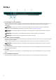 Partie inférieure 1. Haut-parleur gauche Fournit une sortie audio. 2. Étiquette du numéro de série Le numéro de série est un identifiant alphanumérique unique qui permet aux techniciens de maintenance Dell d’identifier les composants matériels de votre ordinateur et d’accéder aux informations de garantie. 3. Haut-parleur droit Fournit une sortie audio.