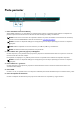 Parte posterior 1. Puerto Thunderbolt 4.0 con Power Delivery Admite USB4, DisplayPort 1.4 y Thunderbolt 4 y también permite conectar una pantalla externa mediante un adaptador de pantalla. Proporciona tasas de transferencia de datos de hasta 40 Gbps para USB4 y Thunderbolt 4. NOTA: Puede conectar una estación de acoplamiento de Dell a los puertos Thunderbolt 4. Para obtener más información, consulte el artículo SLN286158 de la base de conocimientos en www.dell.com/support.