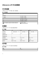 无线模块 下表列出了 Alienware m15 R6 支持的无线局域网 (WLAN) 模块。 表. 8: 无线模块规格 说明 值 型号 Killer 1650 传输速率 高达 2400 Mbps 支持的频带 2.4 GHz/5 GHz 无线标准 ● ● ● ● 加密 ● 64 位/128 位 WEP ● AES-CCMP ● TKIP 蓝牙 蓝牙 5.0 WiFi 802.11a/b/g Wi-Fi 4 (WiFi 802.11n) Wi-Fi 5 (WiFi 802.11ac) Wi-Fi 6 (WiFi 802.11ax) 音频 下表列出了 Alienware m15 R6 的音频规格。 表.