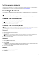 Setting up your computer The setup procedure varies according to your computer. For setup instructions specific to your computer or tablet, see the Quick Start Guide shipped with your computer or see the Setup and Specifications at www.dell.com/support. Connecting to the internet You can connect your computer to the internet using cable, DSL, dial‑up, or a WWAN connection. You may also install a wired or wireless router to share your cable or DSL internet connection with multiple devices.