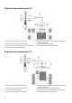 Подключение динамиков 5.1 1. Задний звуковой разъем на компьютере 3. Передний звуковой разъем на компьютере 5. Выход Center/LFE «окружающего» звука на динамике 7. Задний звуковой разъем на динамике 2. Выход среднего канала / канала сабвуфера объемного звука на компьютере 4. 5.1-канальный звуковой кабель 6. Передний звуковой разъем на динамике Подключение динамиков 7.1 1. Задний звуковой разъем на компьютере 3. Боковой звуковой разъем на компьютере 5. 7.1-канальный звуковой кабель 7.