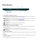Partea din spate 1. Port Thunderbolt 4.0 cu funcție de livrare energie Acceptă USB4, DisplayPort 1.4, Thunderbolt 4 și vă permite să vă conectați și la un afișaj extern cu ajutorul unei plăci video. Oferă rate de transfer al datelor de până la 40 Gb/s pentru USB4 și Thunderbolt 4. NOTIFICARE: Puteți conecta o stație de andocare Dell la porturile Thunderbolt 4. Pentru mai multe informații, consultați articolul SLN286158 din baza de cunoștințe la adresa www.dell.com/support.