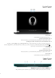 من أعلى .1لوحة لمس متعدد دقيقة وتدعم اإليماءات أزح إصبعك فوق لوحة اللمس لنقل مؤشر الماوس .اضغط للنقر بالزر األيسر واضغط بإصبعين للنقر بالزر األيمن. .2منطقة النقر األيسر اضغط للنقر بالزر األيسر. .3منطقة النقر األيمن اضغط للنقر بالزر األيمن. .4زر التشغيل )رأس (Alien اضغط عليه لتشغيل الكمبيوتر إذا لم يكن قيد التشغيل ،أو إذا كان في حالة السكون أو إذا كان في حالة اإلسبات. اضغط لوضع جهاز الكمبيوتر في حالة السكون إذا كان قيد التشغيل.