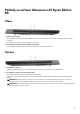 Obsah Kapitola 1: Nastavení počítače Alienware m15 Ryzen Edition R5......................................................... 4 Kapitola 2: Pohledy na zařízení Alienware m15 Ryzen Edition R5........................................................ 5 Vlevo..................................................................................................................................................................................... 5 Vpravo.....................................................................