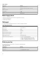 Tabel 5. Externe poorten (vervolg) Omschrijving Waarden ● Eén USB 3.2 Gen 1-poort met PowerShare ● Eén USB 3.2 Gen 2-poort Type-C met DisplayPort OPMERKING: U kunt een Dell dockingstation op deze poort aansluiten. Raadpleeg het Knowledge Baseartikel SLN286158 op www.dell.com/support voor meer informatie. Audiopoort Eén headsetpoort (gecombineerde poort voor hoofdtelefoon en microfoon) Videopoort Eén HDMI 2.