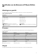 Tabel 8. Specificaties van de draadloze module Omschrijving Waarden Modelnummer Killer 1650x Overdrachtssnelheid Tot 2400 Mbps Ondersteunde frequentiebanden 2,4 GHz / 5 GHz Draadloze standaarden ● ● ● ● Versleuteling ● 64-bits/128-bits WEP ● AES-CCMP ● TKIP Bluetooth Bluetooth 5.0 Wi-Fi 802.11a/b/g Wi-Fi 4 (WiFi 802.11n) Wi-Fi 5 (WiFi 802.11ac) Wi-Fi 6 (WiFi 802.11ax) Audio De volgende tabel bevat de audiospecificaties van uw Alienware m15 Ryzen Edition R5. Tabel 9.