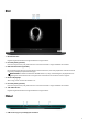 Tartalomjegyzék Fejezetszám: 1: Az Alienware m15 Ryzen Edition R5 beállítása............................................................ 4 Fejezetszám: 2: A Alienware m15 Ryzen Edition R5 számítógép nézetei............................................. 5 Bal oldali nézet..................................................................................................................................................................... 5 Jobb......................................................................