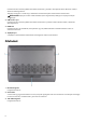 Felülnézet 1. Egyszerre több érintést érzékelő, kézmozdulatokat felismerő precíziós érintőpanel Az ujját az érintőpanelen elhúzva mozgathatja az egér mutatóját. A koppintás a bal egérgombbal való kattintásnak, míg a két ujjal való koppintás a jobb gombbal való kattintásnak felel meg. 2. Bal oldali kattintási terület A bal kattintáshoz nyomja meg. 3. Jobb oldali kattintási terület A jobb kattintáshoz nyomja meg. 4.