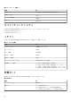 表 15. バッテリーの仕様 (続き) 説明 オプション 1 オプション 2 非対応 非対応 開始および終了時刻などを制御しま す。Dell Power Manager の詳細につ いては、www.dell.com/ja-jp で『私と My Dell』を参照してください。 コイン型電池 注意: 作動時およびストレージの温度範囲はコンポーネント間で異なる場合があるため、デバイスをこれらの範囲外で作動ま たは保存すると、特定のコンポーネントのパフォーマンスに影響する可能性があります。 メモ: Dell では、最適な電力消費量を実現するために、定期的にバッテリを充電することをお勧めします。バッテリの充電が 完全になくなった場合は、電源アダプターを接続し、コンピューターの電源を入れてから、再起動して電力消費量を削減しま す。 ディスプレイ 次の表では、Alienware m15 Ryzen Edition R5 のディスプレイの仕様をリスト表示しています。 表 16.