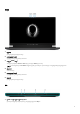 េិដ្ឋភាពេូឡៅៃន Alienware m15 Ryzen Edition R5 ខាងឡ្វេង 1. រន្ធអុីសជាណិត RJ45 ភា្ជប់ខែសេអុីសជារណិត (RJ45) ពីឡរ៉ាតេ័រ ឬ្បាូដឹ្បប្ប៊តខប៊ន សប្មាប់្ូលដំឡណងរបណាិញ ឬអុីនធជាណិត។ ឡ្្លងងបំងពីរៃនឧបករណ៍ភា្ជប់បង្ហាញពីសាថានភាពៃនការភា្ជប់ និងសក្ប្មភាពបណាិញ។ 2. រន្ធកាសប្តឡ្ដក (កាសពាក់ឡលងកលល និង្បីប្កូហវេូនរួ្បបញចេូល) ភា្ជប់កាសឡលងកលល ឬកាសប្តឡ្ដក (រួ្បបញចេូលកាសឡលងកលល និង្បីប្កូហវេូន) ។ សាិ ំ 1. រន្ធ USB 3.2 ជំសន់ 1 ភា្ជប់ឧបករណ៍ដូ្នឧបករណ៍អង្គិទាុកខាងឡប្ៅ និងមាាសុីនប្ពីន។ ិិល់ឡលីននឡិទារេិននាន័យរហូតដល់ 5 Gbps ។ 2.