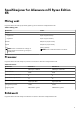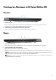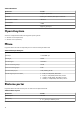 Tabell 5. Eksterne porter (forts.) Beskrivelse Verdier ● 1 1. generasjons USB 3.2-port med PowerShare ● 1 2. generasjons USB 3.2 Type-C-port med DisplayPort MERK: Du kan koble en Dell Docking Station til denne porten. Hvis du vil ha mer informasjon, kan du se artikkel SLN286158 i kunnskapsbasen på www.dell.com/support. Lydport, 1 hodetelefonport, (en kombinasjon av hodetelefoner og mikrofon) Videoporter, 1 HDMI 2.
