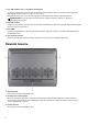 1. Порт USB 3.2 Gen 2 Type-C с интерфейсом DisplayPort Служит для подключения устройств, таких как внешние запоминающие устройства, принтеры и внешние дисплеи. Обеспечивает передачу данных со скоростью до 10 Гбит/с. Поддерживает DisplayPort 1.4 и позволяет подключить внешний дисплей с помощью адаптера дисплея. ПРИМЕЧАНИЕ: Для подключения устройства DisplayPort требуется адаптер USB Type-C/DisplayPort (приобретается отдельно). 2. Порт USB 3.