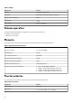 Tabla 15. Especificaciones de la batería (continuación) Descripción Opción uno Opción dos Tiempo de funcionamiento de la batería Varía en función de las condiciones de funcionamiento y puede disminuir significativamente bajo ciertas condiciones de consumo intensivo. Varía en función de las condiciones de funcionamiento y puede disminuir significativamente bajo ciertas condiciones de consumo intensivo.