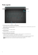 Parte superior 1. Panel táctil de precisión con soporte para función multitáctil Desplace el dedo en el panel táctil para mover el puntero del mouse. Toque para hacer clic con el botón primario y toque con dos dedos para hacer clic con el botón secundario. 2. Área de clic izquierdo Presione para hacer clic con el botón izquierdo. 3. Área de clic derecho Presione para hacer clic con el botón derecho. 4.