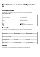 Tabla 3. Chipset Descripción Valores Chipset Integrado en el procesador Procesador AMD Ryzen 7 5800H/AMD Ryzen 9 5900HX Amplitud del bus de DRAM 128 bits EPROM flash 16 MB bus de PCIE Hasta 3.ª generación Sistema operativo Alienware m15 Ryzen Edition R5 es compatible con los siguientes sistemas operativos: ● Windows 10 Home (64 bits) ● Windows 10 Pro (64 bits) Memoria En la siguiente tabla, se enumeran las especificaciones de memoria de Alienware m15 Ryzen Edition R5. Tabla 4.