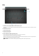 ● s dva M.2 pogona, jedan od M.2 pogona je primarni pogon Tablica 10. Specifikacije pohrane Vrsta pohrane Vrsta sučelja Kapacitet Jedan M.2 2230 SSD pogon PCIe Gen3 x4 NVMe, do 32 Gbps Do 512 GB Jedan M.2 2280 SSD pogon PCIe Gen4 x4 NVMe, do 32 Gbps NAPOMENA: Performanse PCIe NVMe Gen4 x4 bit će ograničene na PCIe Gen3 x4 propusnost na sustavu. Do 2 TB Tipkovnica U sljedećoj su tablici navedene specifikacije tipkovnice računala Alienware m15 Ryzen Edition R5. Tablica 11.