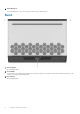 Tastatur Tabel 11. Tastaturspecifikationer Beskrivelse Værdier Type RGB-baggrundsoplyst tastatur Layout QWERTY Antal taster • • • Størrelse X= 19,05 mm mellem midten af tasterne USA og Canada: 103 taster Storbritannien: 104 taster Japan: 107 taster Y= 19,05 mm mellem midten af tasterne Genvejstaster Nogle taster på dit tastatur har to symboler. Disse taster kan bruges til at skrive alternative tegn eller til at udføre sekundære funktioner.