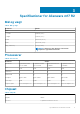 3 Specifikationer for Alienware m17 R2 Mål og vægt Tabel 1. Mål og vægt Beskrivelse Værdier Højde: Forside 18,60 mm (0,73") Bagpå 19,50 mm (0,77") Bredde 399,80 mm (15,74") Dybde 294,30 mm (11,59") Vægt (maksimum) 2,63 kg (5,80 lb) BEMÆRK: Computerens vægt afhænger af den bestilte konfiguration og produktionsvariationer. Processorer Tabel 2. Processorer Beskrivelse Værdier Processorer 9. generation af Intel Core i5/9300H 9. generation af Intel Core i7/9750H 9.
