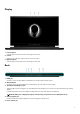 Base 1. Power button (Alienhead) Press to turn on the computer if it is turned off, in sleep state, or in hibernate state. Press to put the computer in sleep state if it is turned on. Press and hold for 4 seconds to force shut-down the computer. NOTE: You can customize the power-button behavior in Power Options. 2. Touchpad Move your finger on the touchpad to move the mouse pointer. Tap to left-click and two finger tap to right-click.