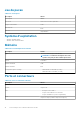 Batterie Tableau 15. Caractéristiques de la batterie Description Valeurs Type Batterie lithium-ion-polymère, 6 cellules Tension 11,40 VCC Poids (maximal) 0.32 kg (0.