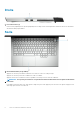 Affichage 1. Microphone gauche Fournit une entrée audio numérique pour l’enregistrement audio et les appels vocaux. 2. Webcam Permet de passer des appels vidéo, de prendre des photos et d’enregistrer des vidéos. 3. Microphone droit Fournit une entrée audio numérique pour l’enregistrement audio et les appels vocaux. Arrière 1. Port HDMI Connecter à une télévision ou à un autre périphérique compatible HDMI en entrée. Fournit une sortie vidéo et audio. 2.