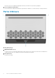 Permet de connecter un amplificateur graphique Alienware pour améliorer les performances graphiques. 5. Port de l’adaptateur d’alimentation Permet de brancher un adaptateur d’alimentation pour alimenter l’ordinateur en courant électrique et recharger la batterie. Partie inférieure 1. Haut-parleur gauche Fournit une sortie audio. 2.