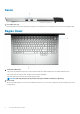 5. Port adaptor daya Menyambungkan adaptor daya untuk menyediakan daya ke komputer dan mengisi ulang baterai. Bawah 1. Speaker kiri Sebagai output audio. 2. Label Tag Servis Tag Servis adalah pengidentifikasi alfanumerik unik yang memungkinkan teknisi layanan Dell untuk mengidentifikasi komponen perangkat keras di dalam komputer Anda dan mengakses informasi garansi. 3. Speaker kanan Sebagai output audio.
