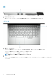 表 10. ストレージの仕様(続き) ストレージのタイプ インターフェイスのタイプ 容量 M.2 2230/2280 ソリッドステート ドライブ PCIe Gen3.0x4 NVMe、最大 32 Gbps 最大 2 TB キーボード 表 11. キーボードの仕様 説明 値 タイプ RGB バックライト キーボード レイアウト QWERTY キーの数 • • • サイズ X = 19.05 mm キー ピッチ 米国とカナダ:103 キー 英国:104 キー 日本:107 キー Y = 19.