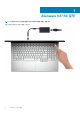 1 Alienware m17 R2 설정 노트: 이 문서의 이미지는 주문한 컴퓨터의 구성에 따라 조금씩 다를 수 있습니다. 전원 어댑터를 연결하고 전원 버튼을 누릅니다.