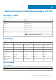 Tabela 3. Mikroukład(cd.) Opis Wartości Procesor Intel Core i5/i7/i9 dziewiątej generacji Przepustowość magistrali DRAM 64 bity Pamięć Flash EPROM 16 MB Magistrala PCIe Do Gen3.0 System operacyjny • • Windows 10 Home (64-bitowy) Windows 10 Professional w wersji 64-bitowej Pamięć Tabela 4. Dane techniczne pamięci Opis Wartości Typ Zintegrowana pamięć systemowa, dwukanałowa DDR4 UWAGA: Pamięć jest zintegrowana na płycie systemowej i nie można jej rozszerzyć po zakupie.