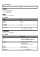 表 9. 音效規格 說明 值 音效控制器 Realtek ALC3281-CG 立體聲轉換 支援 內部音效介面 高傳真音效介面 外部音效介面 通用音效插孔/HDMI 1.4b 連接埠 喇叭數量 雙聲道喇叭 內部喇叭放大器 支援 外部音量控制 鍵盤快速鍵控制項 喇叭輸出: 平均喇叭輸出 4W 峰值喇叭輸出 5W 超低音喇叭輸出 支援 麥克風 攝影機組件中的數位陣列麥克風 存放時 本節列出 Alienware m17 R3 的儲存裝置選項。 Alienware m17 R3 支援下列其中一種儲存裝置組態: • • • • 一個 M.2 2230/2280 固態硬碟 兩個 M.2 2230 固態硬碟 兩個 M.2 2280 固態硬碟 一個 M.2 2230 固態硬碟和兩個 M.2 2280 固態硬碟 例如 Alienware m17 R3 的主要磁碟機依儲存裝置組態而有所不同。若為配備兩個 M.2 2230/2280 固態硬碟的電腦,主要磁碟機是 指定的 M.2 2230/2280 固態硬碟 表 10. 儲存裝置規格 儲存類型 介面類型 容量 M.