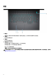 表 17. 顯示器規格 (續) 說明 選項一 選項二 選項三 每吋像素數 (PPI) 127 127 255 對比率 (最小值) 600:1 700:1 1200:1 回應時間 (標準值) 7 ms 3 ms 25MS 更新頻率 144 Hz 300 Hz 60 Hz 水平視角 +/- 85 度 +/- 85 度 +/- 85 度 垂直視角 +/- 85 度 +/- 85 度 +/- 85 度 像素距離 0.1989 公釐 0.1989 公釐 0.0994 mm 耗電量 (最大) 8.67 W 7W 12 W 防眩光與亮面表面 防眩光 防眩光 防眩光 觸控選項 無 無 無 記憶體大小 處理器 GPU — 內建 下表列出 Alienware m17 R3 支援的內建圖形處理器 (GPU) 規格。 表 18. GPU — 內建 控制器 外接式顯示器支援 Intel UHD Graphics 630 共用系統記憶體 一個 HDMI 2.0 連接埠、一個 Mini DisplayPort 1.