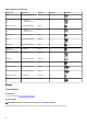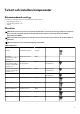 Tabell 11. Lysdiodkoder (fortsättning) Diagnostikindikatorkoder Problembeskrivning 3,6 System-BIOS Flash ofullständig 3,7 Fel på Management Engine (ME) Kamerastatuslampa: Anger om kameran används. • • Fast sken – kameran används. Av – kameran används inte. Caps Lock-lampan: Anger om Caps Lock är aktiverat eller inaktiverat. • • Fast sken – Caps Lock aktiverat. Av – Caps Lock inaktiverat.