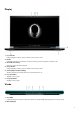 Obsah Kapitola 1: Nastavení počítače Alienware m17 R3..................................................................................4 Kapitola 2: Pohledy na zařízení Alienware m17 R3................................................................................ 5 Vpravo...................................................................................................................................................................................5 Vlevo....................................................
