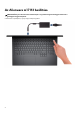 Az Alienware m17 R3 beállítása MEGJEGYZÉS: A jelen dokumentumban található képek a megrendelt konfigurációtól függően eltérhetnek a számítógépen megjelenő képektől. Csatlakoztassa a tápadaptert, és nyomja meg a bekapcsológombot.