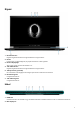 Tartalomjegyzék Fejezetszám: 1: Az Alienware m17 R3 beállítása.................................................................................... 4 Fejezetszám: 2: A Alienware m17 R3 számítógép nézetei..................................................................... 5 Jobb......................................................................................................................................................................................5 Bal oldali nézet..................................