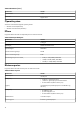 Lyd Følgende tabell inneholder lydspesifikasjoner for Alienware m17 R3. Tabell 9. Lydspesifikasjoner Beskrivelse Verdier Lydkontroller, Realtek ALC3281-CG Stereokonvertering Støttes Internt lydgrensesnitt, Grensesnitt for høydefinisjonslyd Eksternt lydgrensesnitt, Universell lydplugg/HDMI 1.