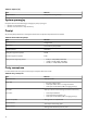Tabela 9. Dane techniczne audio Opis Wartości Kontroler audio Realtek ALC3281-CG Konwersja stereo obsługiwane Wewnętrzny interfejs audio Interfejs audio wysokiej rozdzielczości Zewnętrzny interfejs audio Uniwersalne gniazdo audio/HDMI 1.