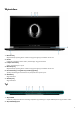 Spis treści Rodzdział 1: Skonfiguruj swój komputer Alienware m17 R3..................................................................4 Rodzdział 2: Widoki komputera Alienware m17 R3............................................................................... 5 Prawa strona..........................................................................................................................................................................5 W lewo...........................................................