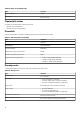 Zvok V spodnji razpredelnici so navedene specifikacije zvoka računalnika Alienware m17 R3. Tabela 9. Tehnični podatki o zvoku Opis Vrednosti Zvocni krmilnik Realtek ALC3281-CG Stereo pretvorba Podprto Notranji zvočni vmesnik Zvočni vmesnik visoke ločljivosti Zunanji zvočni vmesnik Univerzalni priključek za zvok/priključek HDMI 1.