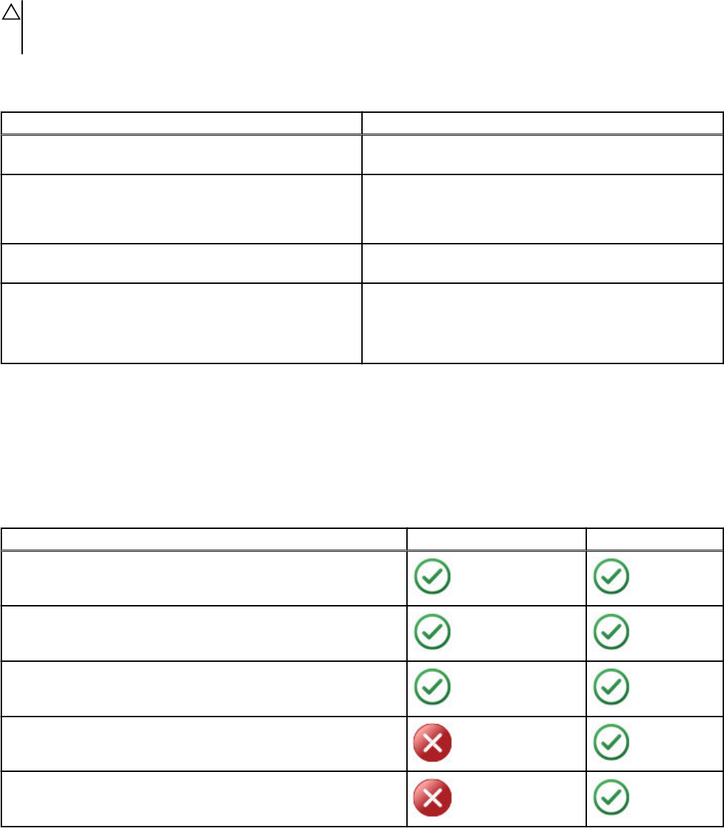 Tableau 12. Fonctionnalités de Dell Backup and Recovery