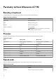 Tabulka 15. Specifikace napájecího adaptéru Popis Možnost jedna Možnost dvě 5,10 mm 5,10 mm Vstupní napětí 100 až 240 V stř. 100 až 240 V stř. Vstupní frekvence 50 až 60 Hz 50 až 60 Hz Vstupní proud (max.) 5A 4,40 A Výstupní proud (nepřerušovaný) 12,31 A 16,92 A Jmenovité výstupní napětí 19,50 V ss. 19,50 V ss.